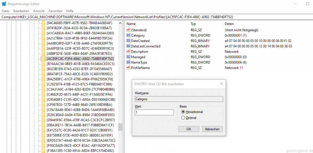 Da unter diesem Schlüssel alle jemals verbundenen Netzwerke gelistet werden, müssen wir uns anhand des Namens orientieren, den wir nur innerhalb der jeweiligen Unterschlüssel finden